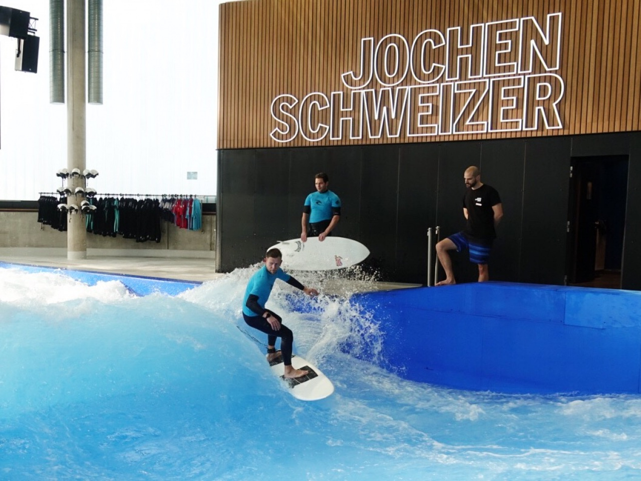 Year-round surfing at summery warm water temperature, possible at the Jochen Schweizer citywave, Germnay's first indoor surf wave. You will find a surf wave of the highest quality, which offers ideal conditions for beginners, advanced surfers and professionals. You can make a booking matching your individual skill-level.