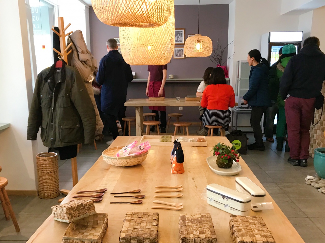SUZUKI Nomnom Kitchen is a small Japanese restaurant and deli. The fine menu offers Miso and Udon/Soba noodle soup and Donburi, as well as a few selected baked goods and Japanese teas. The design of the place is clean, with wooden furniture and low-hanging lights, creating a relaxed atmosphere.