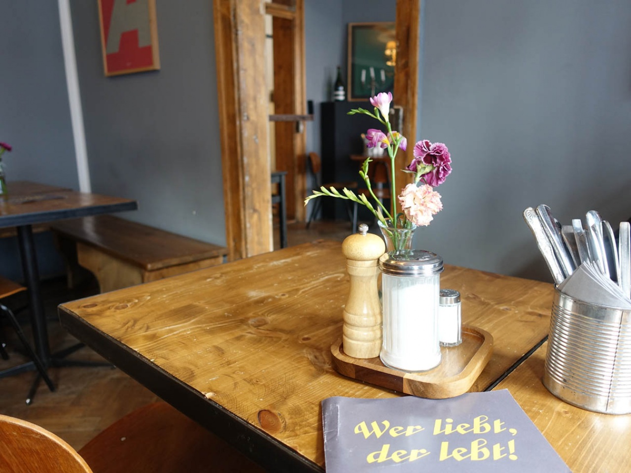 Die Waldmeister München is a popular breakfast and lunch spot in Maxvorstadt. The lovingly renovated space has a homelike atmosphere with many wooden elements and muted paint colours. The breakfast menu offers everything one would expect: from freshly made eggs omelette to Birchermüsli and pastries. All items can be selected individually on an order card to tick off. The monthly changing lunch menu offers well prepared home cooking. It's recommended to make a reservation for breakfast and brunch on weekends.