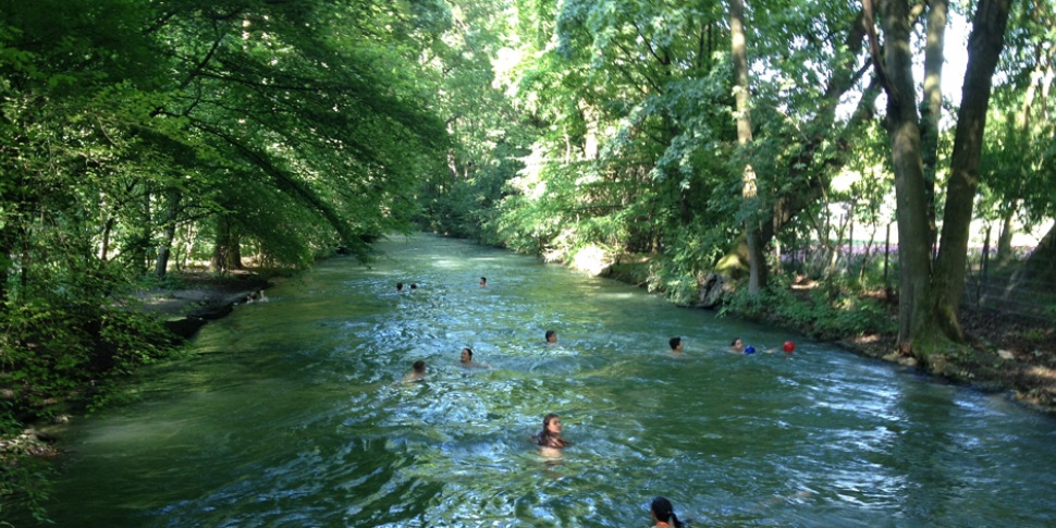The Eisbach is a small man-made river that flows through the southern part of Englischer Garten, Munich’s large inner-city park. This river is famous for its two standing waves, where surfing is possible all year round. On hot summer days though, locals also enjoy cooling off by jumping into the icy water and floating down its rapids. If you’re a very good swimmer and want to give it a go, then you can start your ride at the lawn close to the surf spot at Haus der Kunst and swim down the river until you arrive at the second wave. This is where you can get out using a ladder. Both sides of the river are connected by a rope at this spot, which you can use to drag yourself to the left side to get to the ladder. If you decide to swim through the wave and past the surfers (be sure to make yourself noticed by the surfers!) there are a few more possible exit-points until you get to Tivoli Bridge. This is where you need to get out! Only a few meters downstream is a waterfall and dam, where getting out is nearly impossible. Once you get out at Tivoli Bridge you can walk along the river to get back to where you started from.