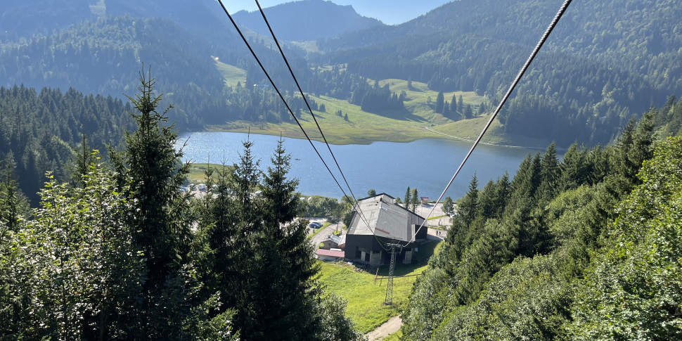 Since there are different ways to do this hike we give you instructions for the counter-clockwise route, which is our favourite. We start our hike at the car park of Herzogstandbahn cable car. The lower terminal of the cable car is only a few metres away from the lake in Walchensee village. On our tour, we first take the cable car that takes us up to the Fahrenbergkopf at an altitude of 1,627 metres (those who prefer to make the ascent on foot should plan for about 2 1/4 hours extra). Once you step outside the lift, the hike to Herzogstand summit begins already with a stunning overlook of lake Walchensee and the Karwendel mountain range.