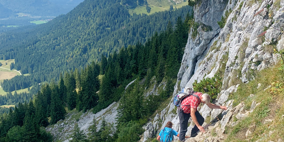 This mountain hike is yet another very popular mountain trail in the Alpine foreland near Munich. For this quite demanding hike you need to be in good shape, wear sturdy shoes and should be free from vertigo.
