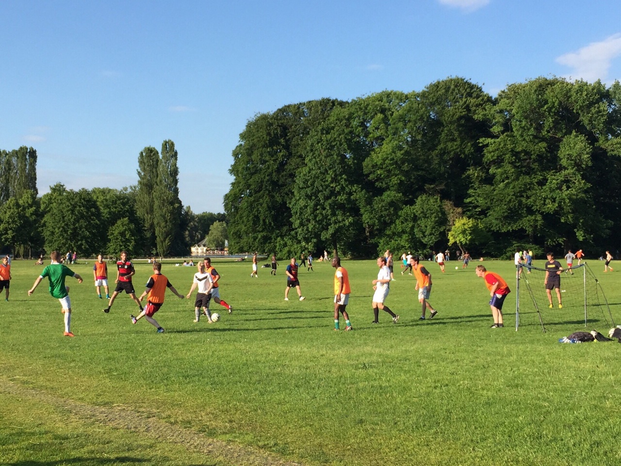 Werneckwiese is Munich's informal, public football pitch. People with all different kinds of backgrounds meet next to Kleinhesseloher See to team up for 90 minutes of sweat soaked passion.