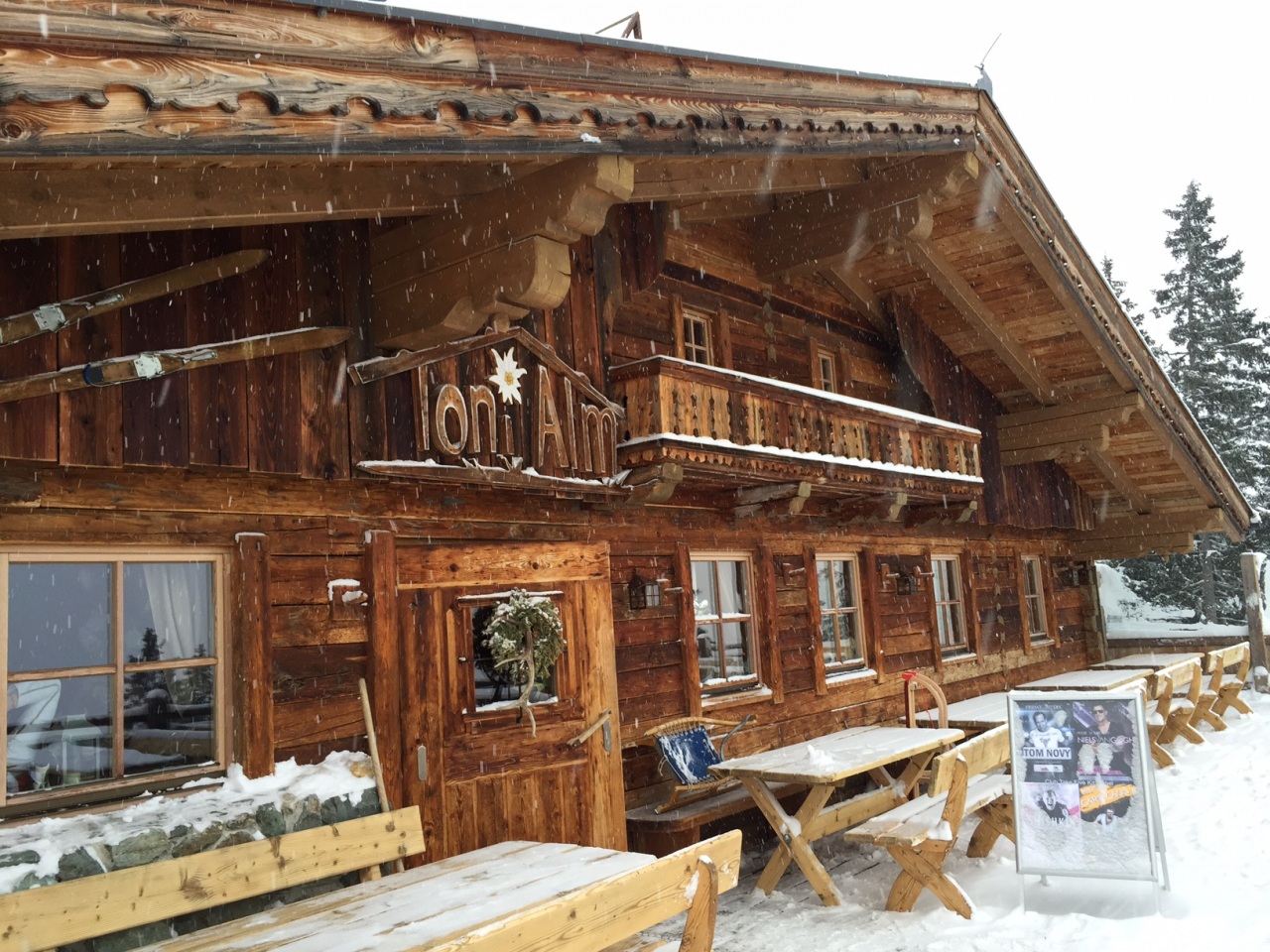 When racing down the slope from "Resterkogel" to the base station in Hollersbach (Mittersill) you will come across this cabin. It's located fairly at the end of the slope and you won't miss it unless you go off-piste. They serve Tirolean classics in a cosy atmosphere.