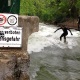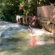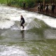 This standing river wave is popular with those surfers, who prefer a slightly more relaxed way of surfing. The spot is referred to as E2 by locals. The challenge here is to be able to do a drop in (front side drop in for regular stance) and manage to surf on a wave, that is not as steep and powerful. It's advisable to use a board with a lot of volume. This place is also great for taking a short break from strolling through Englischer Garten and watching the surfers for a little while, since there are not as many spectators at this place as at the famous Eisbach Wave at Haus der Kunst.