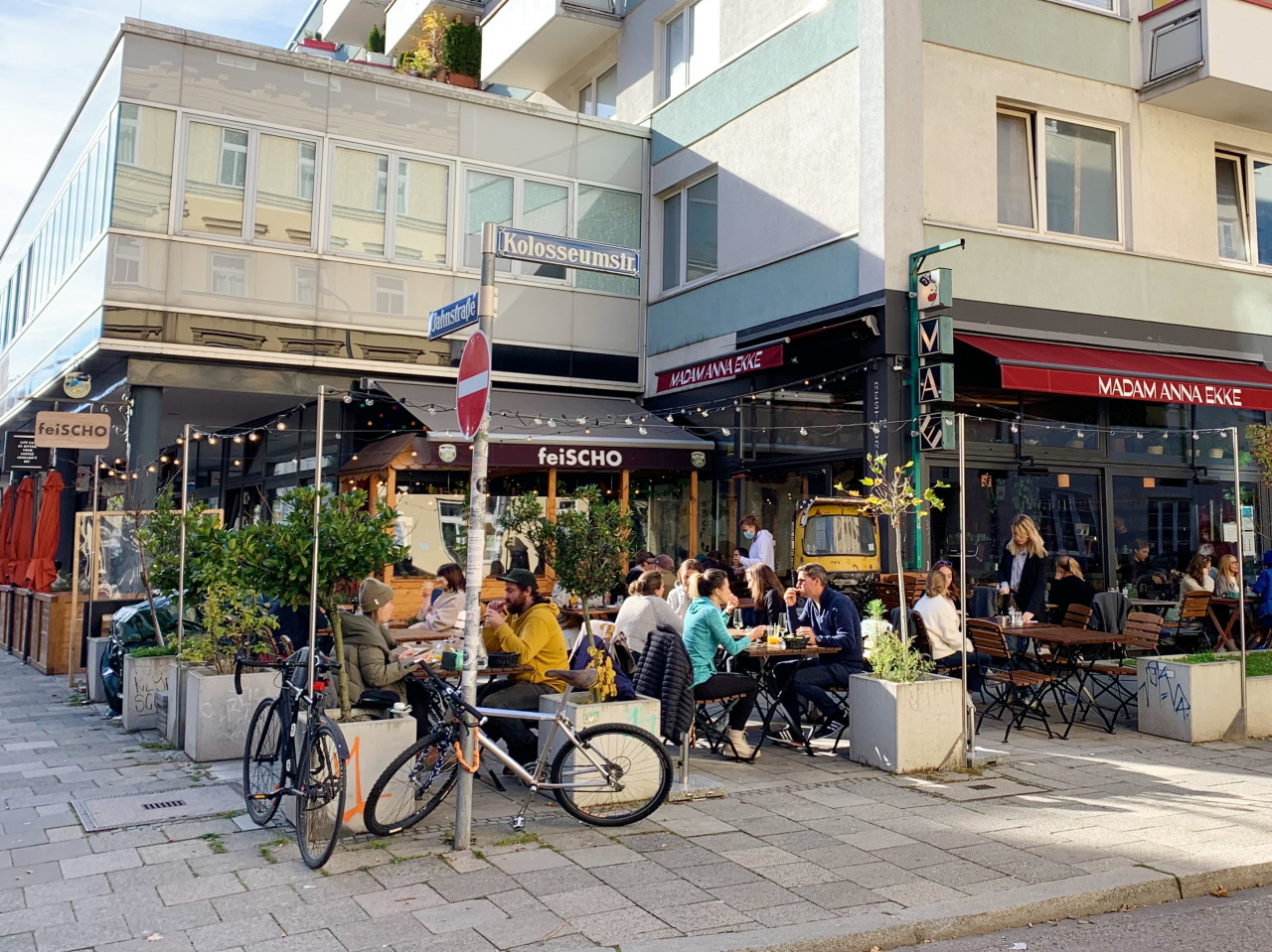 Café & restaurant Madam Anna Ekke is a popular breakfast and brunch spot in Glockenbach dirstrict. It has large floor-to-ceiling windows that can be opened in summer, which gives off a bright and friendly atmosphere. With the windows open, you almost feel as if you are sitting on the large outdoor terrace. On the walls inside you will find colourful illustrations by the artist Günther Kempf, which gives the place a unique touch that adds to its laid-back, alternative atmosphere.