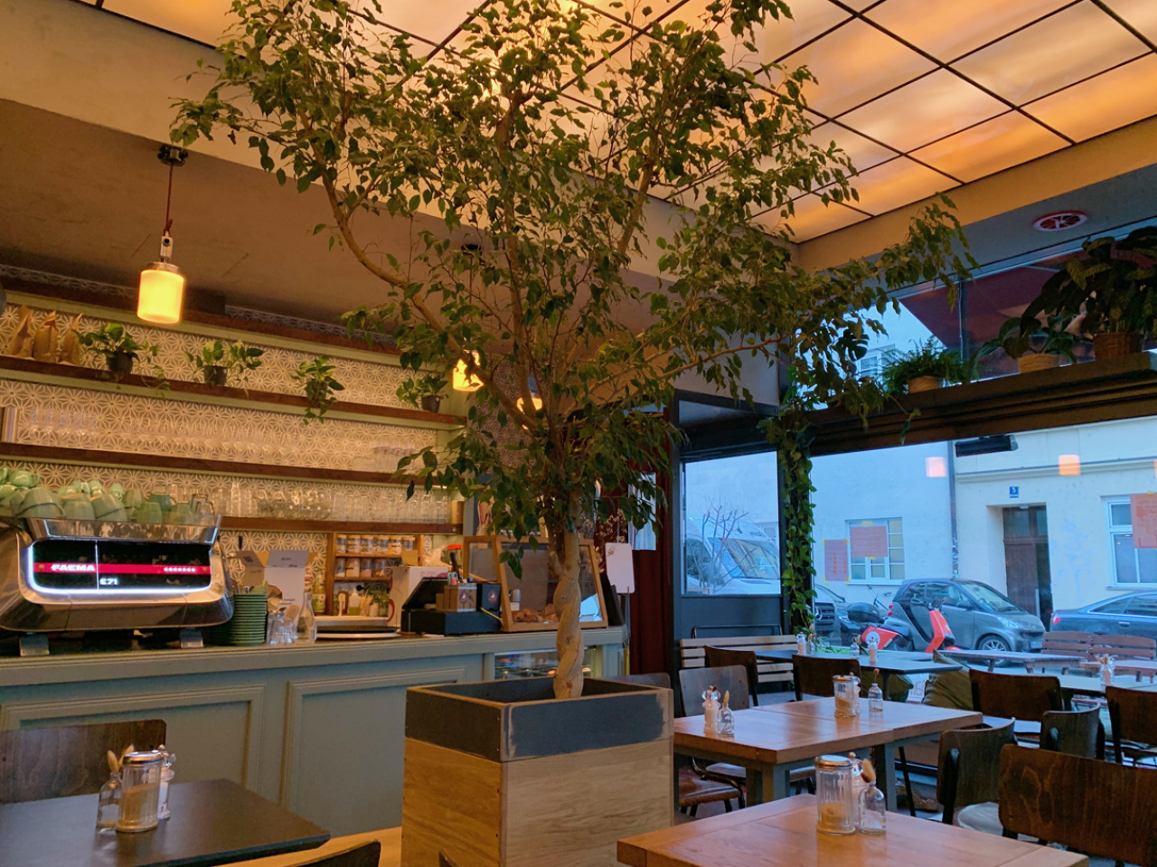 Guest can enjoy brunch daily until 2 pm. The menu offers breakfast classics like fresh pastries, Bircher muesli or vergan pancakes, as well as savoury dishes like shakshuka, hummus variations, egg benedict and more. Of course, there is also excellent coffee made from their own fairtrade roasting, as well as freshly pressed juices.