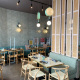 UKIYO is a restaurant for contemporary Japanese cuisine only a stone's throw away from Viktualienmarkt. The interior of this place is decorated in pleasant pastel colours, designer chairs and tables are made of oak wood and tasteful lighting elements hang from the 4-metre-high ceiling, which creates a beautiful sense of space. The centrepiece of the open-plan space is a large bar made of white travertine.