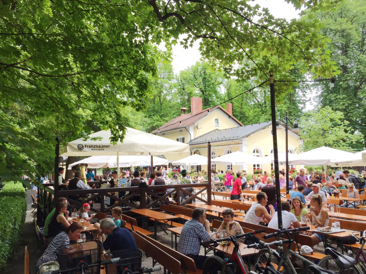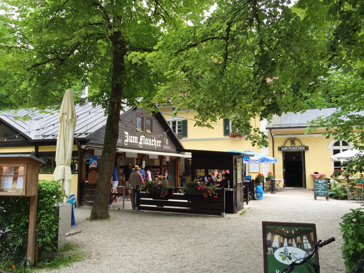 Zum Flaucher is a Biergarten mostly frequented by locals. It's tucked away in the southern meadows of the river Isar in a lush green location and often is destination when making a bicycle trip along the river. They offer regional food specialties and brass bands are playing on weekends.