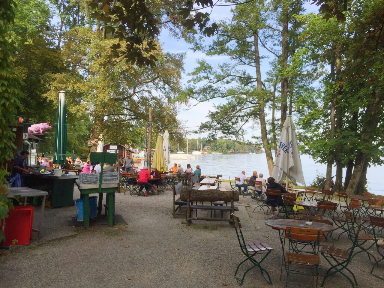 Tutzinger Biergarten lies at the western shore of Starnberger See, virtually right next to the lake. There is nothing quite like enjoying a cold drink sitting under the old trees and watching the sailing boats cruising by. If you fancy a refreshing dip in the water, there is a swimming spot next to the beer garden, where you can also rent SUPs and windsurfing equipment.