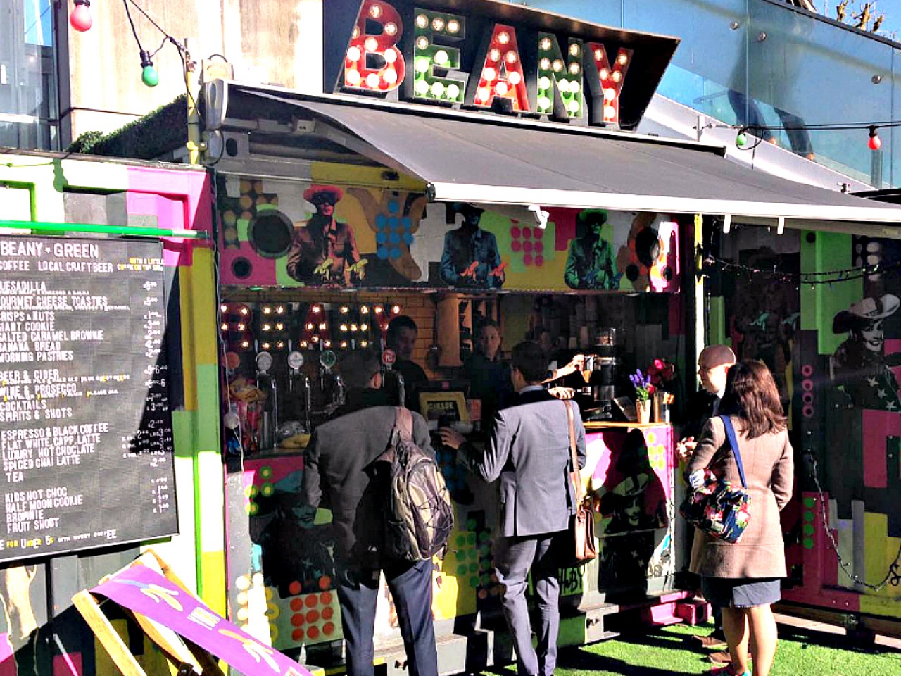 Great coffee and probably the best homemade banana bread in London. And if you've missed it on your way in to work, there is always later for local craft beers! The little coffee place is located just under the Hungerford Bridge and outside the Royal Festival Hall in a converted shipping container with a funky, colorful design.