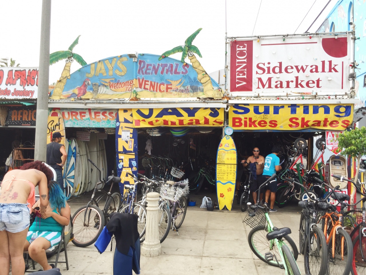 At first sight this rental place might look somewhat shabby. However, they offer a broad selection of surf & skate boards to rent by the hour, as well as bikes and a lot of other stuff to have fun with at Venice beach and Boardwalk. The guy, who runs this place is a true Venice original and personates the Californian lifestyle. The service is great and the staff working there is courteous.